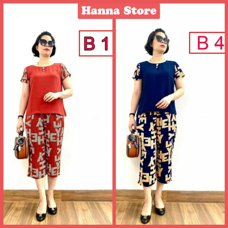 Freeship- Bộ đũi trung niên cho bà cho mẹ - Tay cộc quần lửng, Quần đũi lụa ống sớ-HANNA STORE mua tại đây